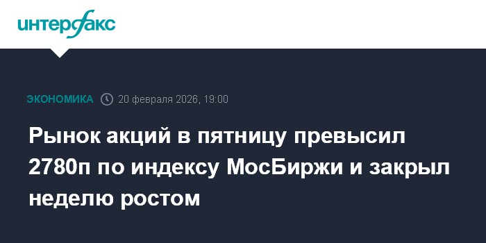 Москва. 20 февраля. INTERFAX.RU - Рынок акций РФ в пятницу подрос на фоне улучшения внешней сырьевой конъюнктуры (подорожали металлы, фьючерс на нефть Brent закрепился выше $71 за баррель) из-за усиления риска военной эскалации вокруг Ирана; сдерживающим фактором для покупателей оставалось отсутствие прорыва в трехсторонних переговорах США-РФ-Украина по украинскому урегулированию. Индекс МосБиржи превысил 2780 пунктов, при этом лидировали в росте и по объему торгов бумаги ВТБ (+3,3%) на новостях о конвертации "префов" банка.