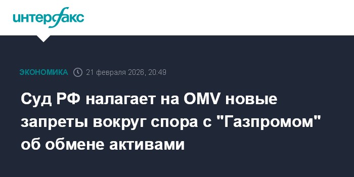 "Газпром" в феврале 2026 года подал в российский суд новый иск к OMV Exploration & Production об антиисковом запрете. Арбитражный суд Петербурга и Ленобласти 20 февраля принял обеспечительные меры: запретил OMV E&P получать и приводить в исполнение в любом иностранном государстве судебные решения против "Газпрома" по делу в отношении соглашения об обмене активами; запретил инициировать или продолжать за пределами РФ любые разбирательства по этому соглашению, в том числе связанные с обеспечительными мерами. Предварительное судебное заседание суда по этому делу назначено на 6 апреля.
