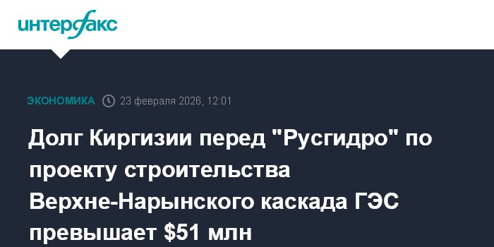 Долг Киргизии перед "Русгидро" по проекту строительства Верхне-Нарынского каскада ГЭС превышает $51 млн