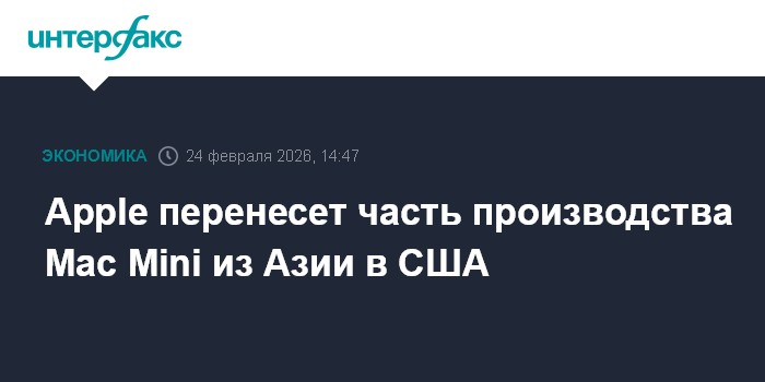 Москва. 24 февраля. INTERFAX.RU - Apple Inc. перенесет часть производства компьютеров Mac Mini из Азии на территорию США, сказал The Wall Street Journal главный операционный директор компании Сабих Хан.