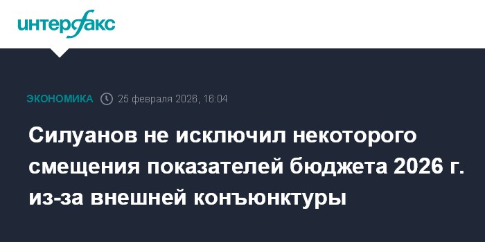 Москва. 25 февраля. INTERFAX.RU - Показатели федерального бюджета на 2026 год из-за внешней конъюнктуры могут быть несколько скорректированы, заявил министр финансов РФ Антон Силуанов.