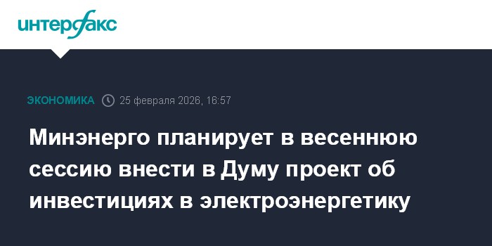 Минэнерго планирует в весеннюю сессию внести в Думу проект об инвестициях в электроэнергетику