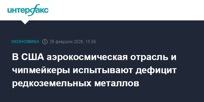 Москва. 26 февраля. INTERFAX.RU - Поставщики американских аэрокосмических компаний и чипмейкеров сталкиваются с нехваткой редкоземельных металлов, причем эта проблема усиливается, сообщает Reuters со ссылкой на источники в отрасли.