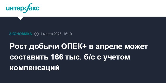 Рост добычи ОПЕК+ в апреле может составить 166 тыс. б/с с учетом компенсаций