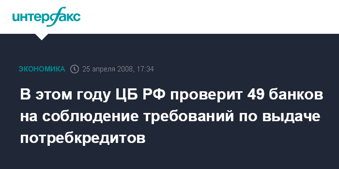 В этом году ЦБ РФ проверит 49 банков на соблюдение требований по выдаче потребкредитов