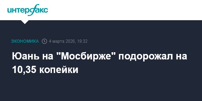 Москва. 4 марта. INTERFAX.RU - На волатильных торгах среды на "Московской бирже" рубль подешевел к юаню на решении Минфина не проводить операций по покупке/продаже иностранной валюты и золота на внутреннем валютном рынке в рамках бюджетного правила в марте 2026 года.