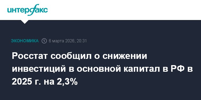 Росстат сообщил о снижении инвестиций в основной капитал в РФ в 2025 г. на 2,3%