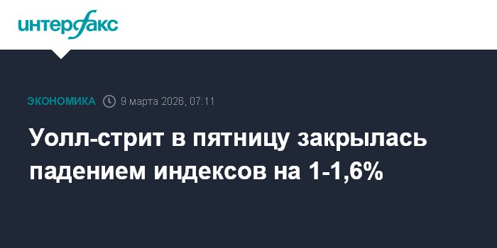 Уолл-стрит в пятницу закрылась падением индексов на 1-1,6%