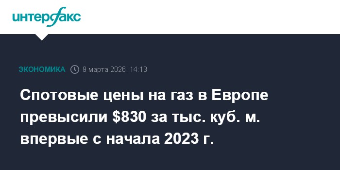 Спотовые цены на газ в Европе превысили $830 за тыс. куб. м. впервые с начала 2023 г.