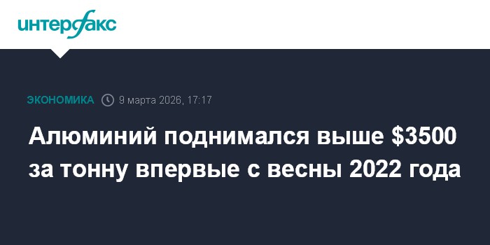 Алюминий поднимался выше $3500 за тонну впервые с весны 2022 года