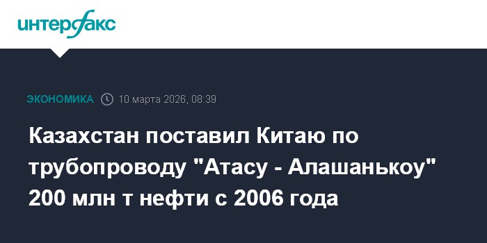 Казахстан поставил Китаю по трубопроводу "Атасу - Алашанькоу" 200 млн т нефти с 2006 года