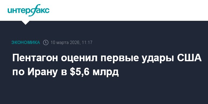 Москва. 10 марта. INTERFAX.RU - По оценке Пентагона, первые удары вооруженных сил США по Ирану обошлись в $5,6 млрд в виде стоимости израсходованных боеприпасов, пишет The Washington Post со ссылкой на источники.