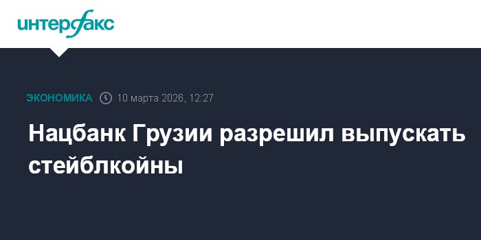 Москва. 10 марта. INTERFAX.RU - Национальный банк Грузии (НБГ) разрешил компаниям-резидентам выпускать стейблкойны в местной валюте - лари и иностранной валюте, сообщил регулятор.