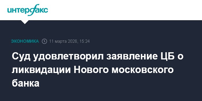Москва. 11 марта. INTERFAX.RU - Арбитражный суд Москвы удовлетворил заявление Банка России о принудительной ликвидации Нового московского банка (НМБ), следует из картотеки суда.