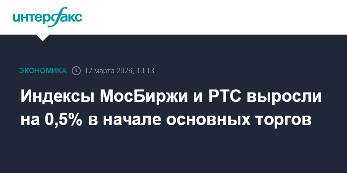 Индексы МосБиржи и РТС выросли на 0,5% в начале основных торгов