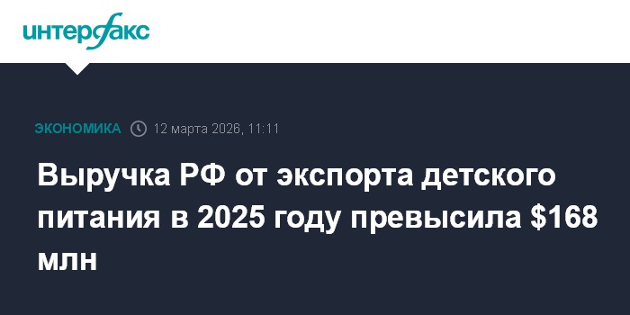 Выручка РФ от экспорта детского питания в 2025 году превысила $168 млн
