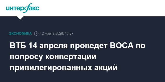Список лиц, имеющих право на участие в собрании, будет составлен по состоянию на 21 марта 2026 года. Акционеры смогут голосовать в электронном виде в мобильном приложении "Акционер ВТБ", "ВТБ Мои Инвестиции" и "Кворум", на сайте АО "ВТБ Регистратор" и портале общего собрания акционеров с 22 марта по 14 апреля включительно.