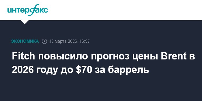 Москва. 12 марта. INTERFAX.RU - Fitch Ratings повысило прогноз средней цены нефти марки Brent в 2026 году до $70 за баррель с ожидавшихся ранее $63 за баррель, марки WTI - до $65 за баррель с $58 за баррель, сообщило агентство.
