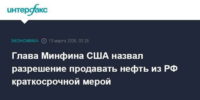 Москва. 13 марта. INTERFAX.RU - Выданное США разрешение на продажу российской нефти и нефтепродуктов, загруженных на танкеры по состоянию на 12 марта, является кратковременной мерой и не принесет Москве значительной прибыли, заявил американский министр финансов Скотт Бессент.