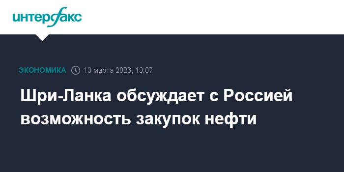 Москва. 13 марта. INTERFAX.RU - Руководство Шри-Ланки обсуждает с Москвой возможность закупок российской нефти, сообщает местный портал Daily News.