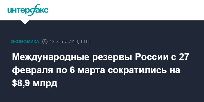 Международные резервы России с 27 февраля по 6 марта сократились на $8,9 млрд