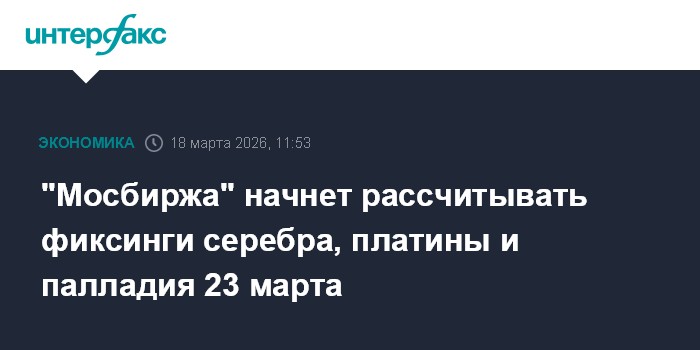 "Мосбиржа" начнет рассчитывать фиксинги серебра, платины и палладия 23 марта