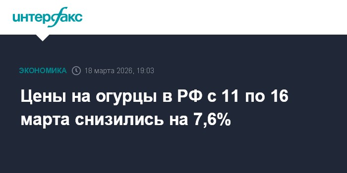 Москва. 18 марта. INTERFAX.RU - Цены на огурцы в РФ, бившие рекорды в начале года, продолжают снижаться.