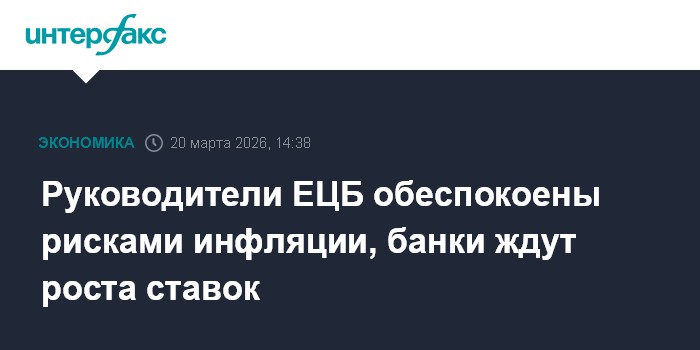 Москва. 20 марта. INTERFAX.RU - Члены руководства Европейского центрального банка (ЕЦБ) выразили обеспокоенность возросшими рисками ускорения инфляции, а ведущие банки мира начали прогнозировать два и более повышения основных процентных ставок в еврозоне.