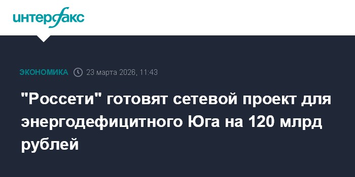 Москва. 23 марта. INTERFAX.RU - Стоимость проекта ПАО "Россети" для энергодефицитного Юга России может превысить 120 млрд рублей, сообщил журналистам глава компании Андрей Рюмин.