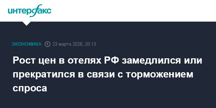 Москва. 23 марта. INTERFAX.RU - Рост цен в российских отелях замедлился или остановился в этом году из-за замедления роста спроса, а также конкуренции с зарубежными отелями, сообщил в понедельник замминистра экономического развития Дмитрий Вахруков.