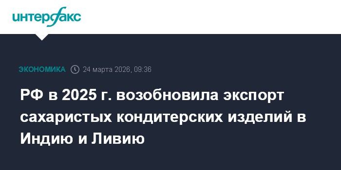 РФ в 2025 г. возобновила экспорт сахаристых кондитерских изделий в Индию и Ливию