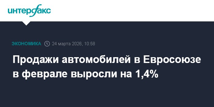 Москва. 24 марта. INTERFAX.RU - В Евросоюзе в феврале продажи автомобилей увеличились на 1,4% в годовом исчислении, сообщила Европейская ассоциация производителей автомобилей (ACEA).