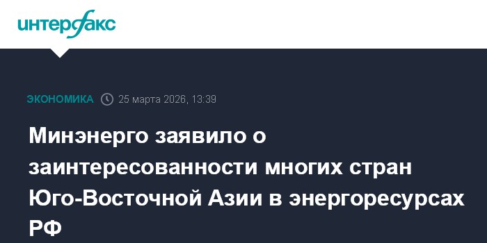 Минэнерго заявило о заинтересованности многих стран Юго-Восточной Азии в энергоресурсах РФ