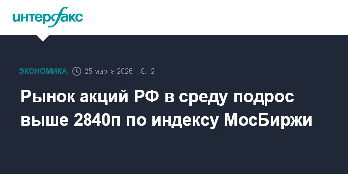 Москва. 25 марта. INTERFAX.RU - Российский рынок акций в среду сохранил боковик при смешанной динамике цен blue chips на фоне подешевевшей нефти (фьючерс на Brent опускался ниже $100 за баррель) на надеждах на деэскалацию военного конфликта на Ближнем Востоке, роста металлов и ожиданий возобновления переговоров по украинскому урегулированию. Индекс МосБиржи превысил 2840 пунктов.