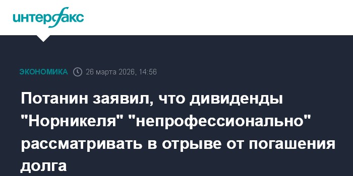 Москва. 26 марта. INTERFAX.RU - Вопрос о выплате "Норильским никелем" дивидендов за 2025 год "непрофессионально" рассматривать только на основании финансовых показателей, не учитывая возможность направить денежный поток на погашение долга или реализацию инвестпрограмм роста, заявил "Интерфаксу" глава компании Владимир Потанин.