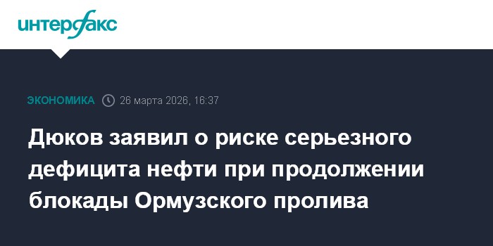 Дюков заявил о риске серьезного дефицита нефти при продолжении блокады Ормузского пролива