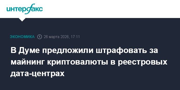 Москва. 26 марта. INTERFAX.RU - Комитет Госдумы по энергетике предложил ввести административные штрафы за деятельность по майнингу цифровой валюты в центрах обработки данных (ЦОД), включенных в реестр Минцифры.