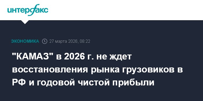 Москва. 27 марта. INTERFAX.RU - Российский грузовой авторынок в 2026 году не покажет значимого восстановления, "КАМАЗ" надеется отработать текущий год хотя бы без убытка, сообщил журналистам гендиректор ПАО "КАМАЗ" Сергей Когогин.