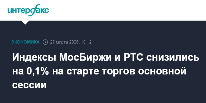 Москва. 27 марта. INTERFAX.RU - Рынок акций РФ на старте торгов основной сессии на МосБирже в пятницу умеренно просел на фоне снижения внешних фондовых площадок и сохраняющейся неопределенности с переговорами по украинскому урегулированию; факторами поддержи выступают дорожающие металлы и возобновившая рост нефть (фьючерс на Brent вновь превысил $108 за баррель) после локального отката на решении президента США Дональда Трампа отложить до 6 апреля запланированные удары по иранским электростанциям.