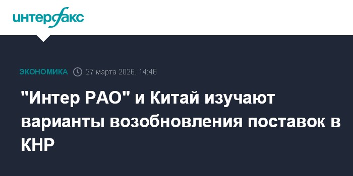 "Интер РАО" и Китай изучают варианты возобновления поставок в КНР
