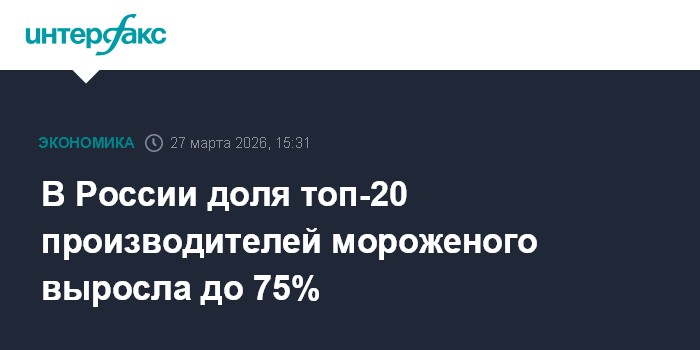 Москва. 27 марта. INTERFAX.RU - В России доля 20 ведущих производителей мороженого в 2025 году выросла до 75% от общего объема производства с 71% в 2024 году, сообщил Союзмолоко к выходу рейтинга крупнейших мороженщиков. Рейтинг подготовлен союзом, медиаагентством "Милкньюс" и консалтинговой компанией Streda Consulting.
