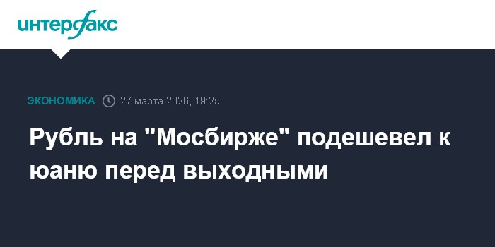 Москва. 27 марта. INTERFAX.RU - Юань подорожал к рублю на пятничных торгах на "Московсокй бирже". Рубль подешевел перед выходными, при этом в первой половине сессии поддержку его котировкам оказывал спрос на рублевую ликвидность при подготовке экспортеров к налоговым выплатам марта.