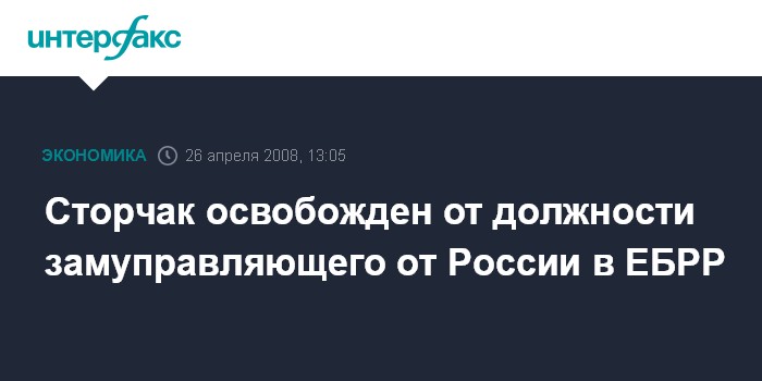 Москва. 26 апреля. ИНТЕРФАКС - Замминистра финансов РФ Сергея Сторчака на посту заместителя управляющего от РФ в Европейском банке реконструкции и развития заменит замглавы Минфина Дмитрий Панкин.