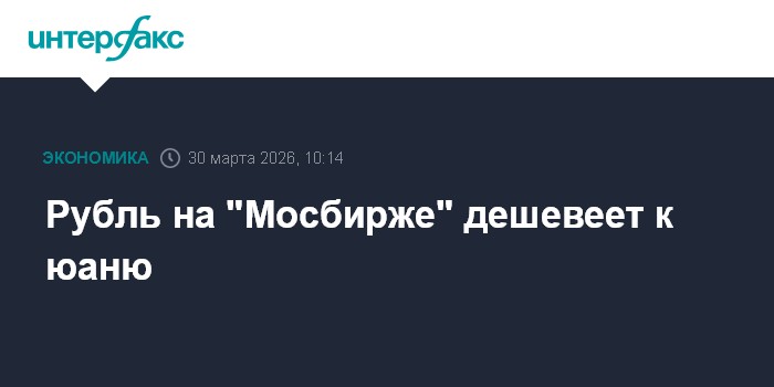 Москва. 30 марта. INTERFAX.RU - На открытии торгов понедельника на "Московской бирже" рубль дешевеет к юаню на фоне падения спроса на рублевую ликвидность со стороны экспортеров после завершения подготовки к налоговым выплатам марта.