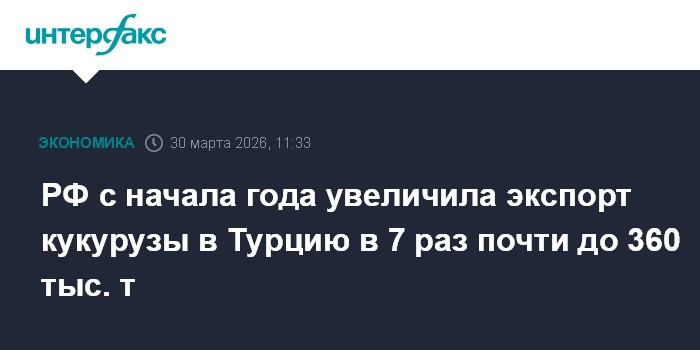РФ с начала года увеличила экспорт кукурузы в Турцию в 7 раз почти до 360 тыс. т