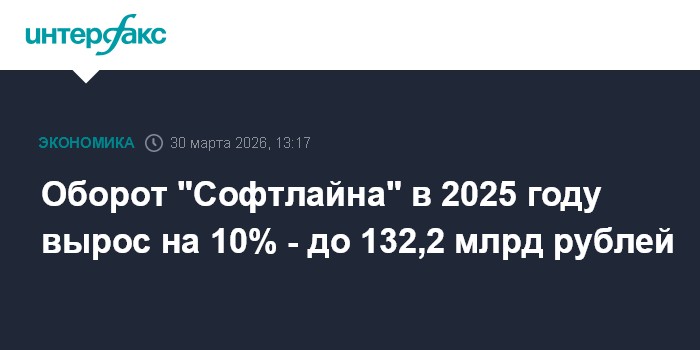 Москва. 30 марта. INTERFAX.RU - Оборот ПАО "Софтлайн" по данным аудированной отчетности по МСФО в 2025 году составил 132,2 млрд рублей, что на 10% больше, чем в 2024 году.