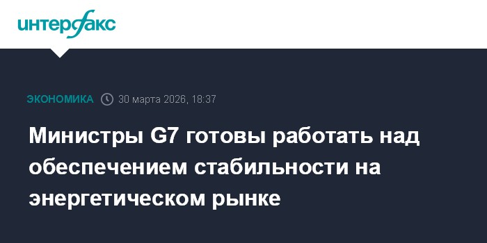 Москва. 30 марта. INTERFAX.RU - Страны "Большой семерки" готовы предпринять все необходимые шаги, чтобы обеспечить стабильность на рынке энергоносителей, говорится в заявлении министров финансов G7. Об этом пишет Guardian.
