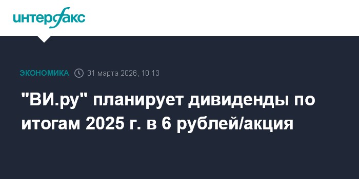 "ВИ.ру" планирует дивиденды по итогам 2025 г. в 6 рублей/акция