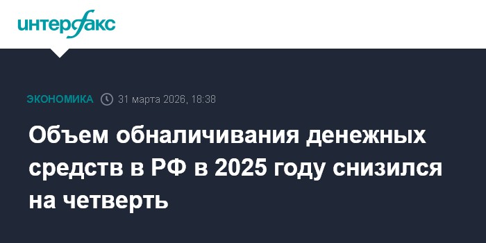 Москва. 31 марта. INTERFAX.RU - Объем обналичивания денежных средств во всех секторах российской экономики в 2025 году снизился на четверть - до 48,3 млрд рублей, говорится в материалах ЦБ РФ.