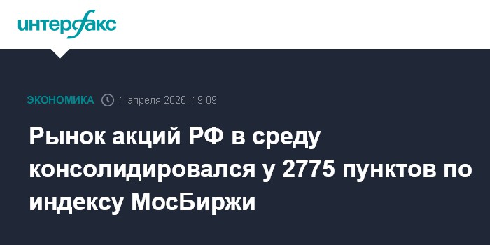 Москва. 1 апреля. INTERFAX.RU - Российский рынок акций в среду консолидировался при смешанной динамике цен blue chips на фоне улучшения внешней фондовой конъюнктуры, роста металлов и просевшей нефти (июньский фьючерс на Brent опустился ниже $102 за баррель) на фоне заявлений властей США о планах завершения конфликта с Ираном; сдерживающим фактором для покупателей оставалась неопределенность с переговорами по украинскому урегулированию. Индекс МосБиржи на фоне укрепления официального курса рубля стабилизировался в районе 2775 пунктов.